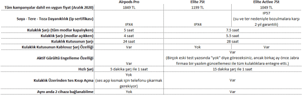 İşte bu nedenlerden ve iPhone kullanmamdan dolayı Airpods bakmaya başladım. Airpods’un 2. nesli başta su geçirmezlik nedeniyle ve aktif gürültü engelleme özelliklerinin olmaması nedeniyle elendi. Bir sonraki alternatifi ise Airpods Pro idi. Aralık 2020’deki yaklaşık 2000 TL’lik fiyatını hak edip etmediğini araştırmaya başladım. Karşısına birçok rakip koyduğum Airpods Pro’nun sonunda rakibini buldum: Jabra Elite Active 75t.