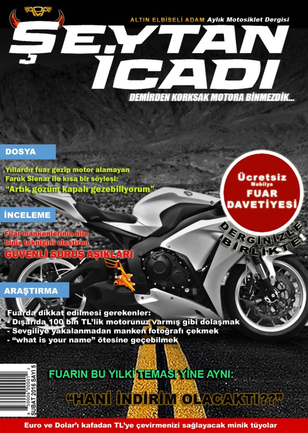 Şeytan İcadı adlı dergi kapağımız, ikinci sayıdan itibaren sevilen motosiklet programcısı “Altın Elbiseli Adam” için hazırlanacaktır.